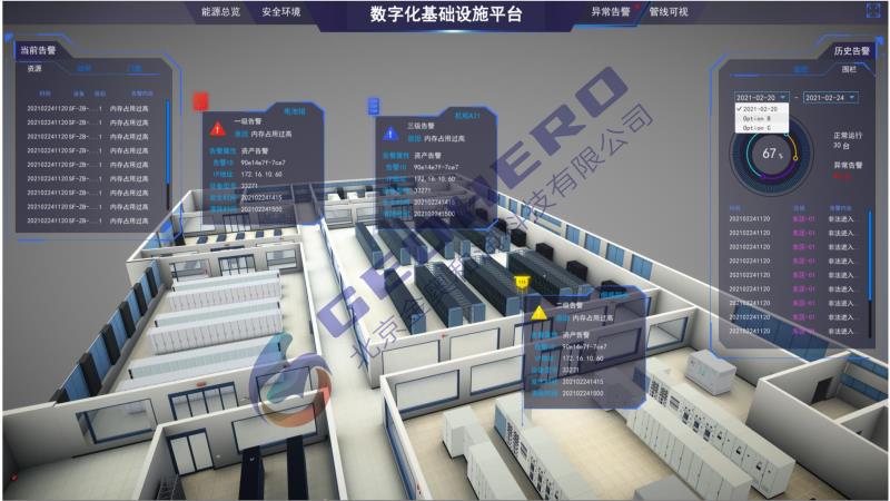 运用信息无损集成核心技术,创建精确、完整的一体化监控数据集成,实现对城市、园区、机房、系统、云服等综合可视化监测,实现单一平台数据宏观微观一体化、监测室内室外一体化、管控地上地下一体化、管理静态动态一体化。