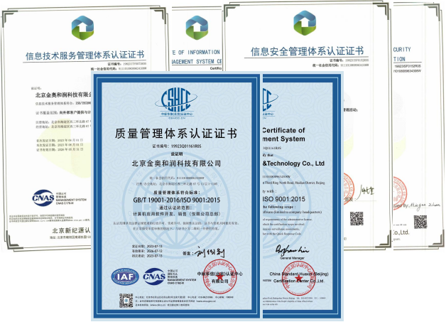 已有ISO9001质量管理体系认证、ISO20000信息技术服务管理体系认证、ISO27001信息安全管理体系认证,科技型中小企业认定、北京市“创新型”中小企业认定、国家高新技术企业认定、专精特新中小企业认定,并先后获得了软件著作权31项。